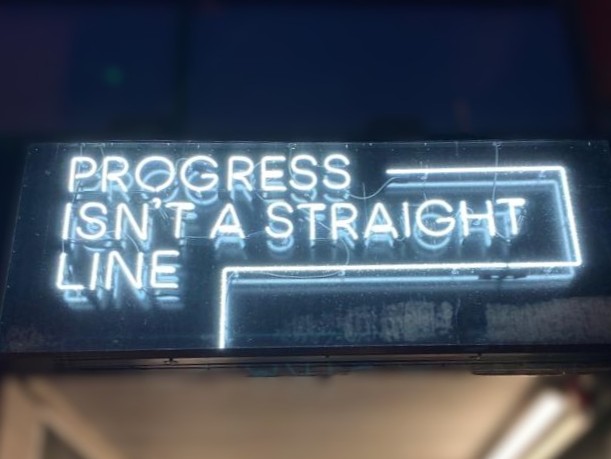 A sign that read "progress isn't a straight line" once decorated the entrance to the firm's arcade.